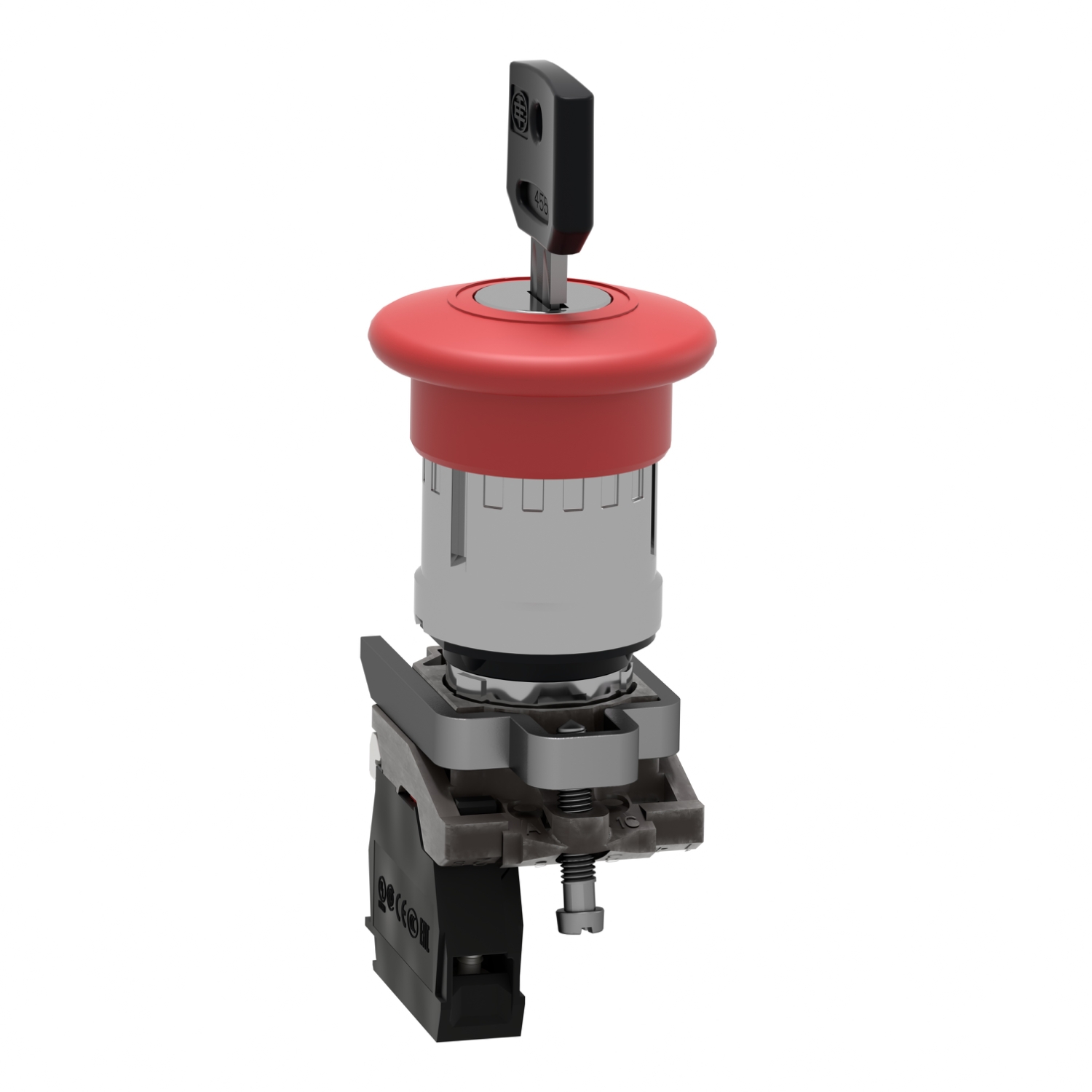 XB4BS9442 | Emergency stop switching off, metal, red mushroom Ø40, Ø22, trigger latching key release, 1 NC
